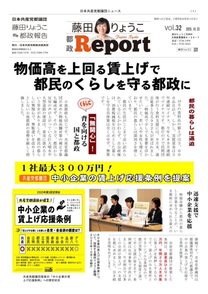 藤田りょうこの都政報告No.13(2019年10月20日号)